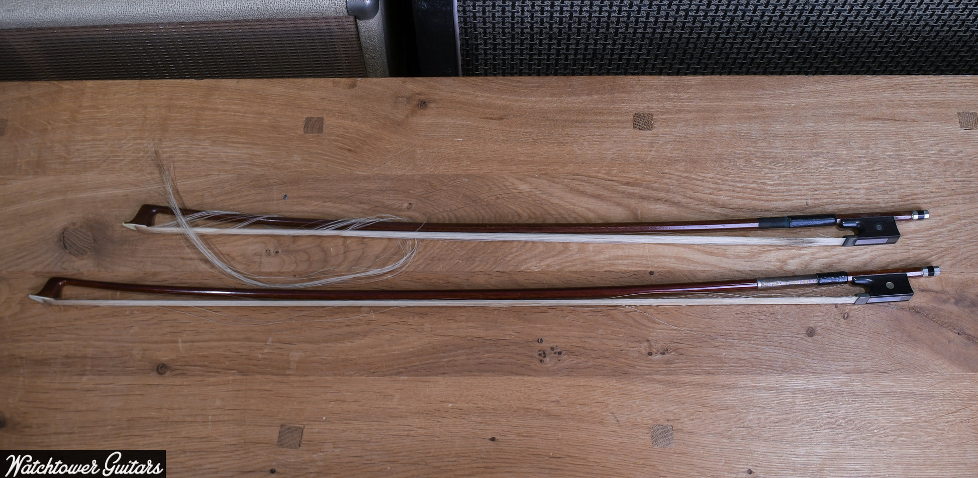 However, it's important to note that the top of this violin has an area with an inherent defect in the wood. This aspect might slightly affect its aesthetics or sound quality, depending on the nature of the defect. Accompanying the violin are two student bows, making it a practical choice for learners or collectors who appreciate historical instruments. The Carlisle Violin is a testament to early 20th-century American violin-making, offering both historical value and musical potential.
