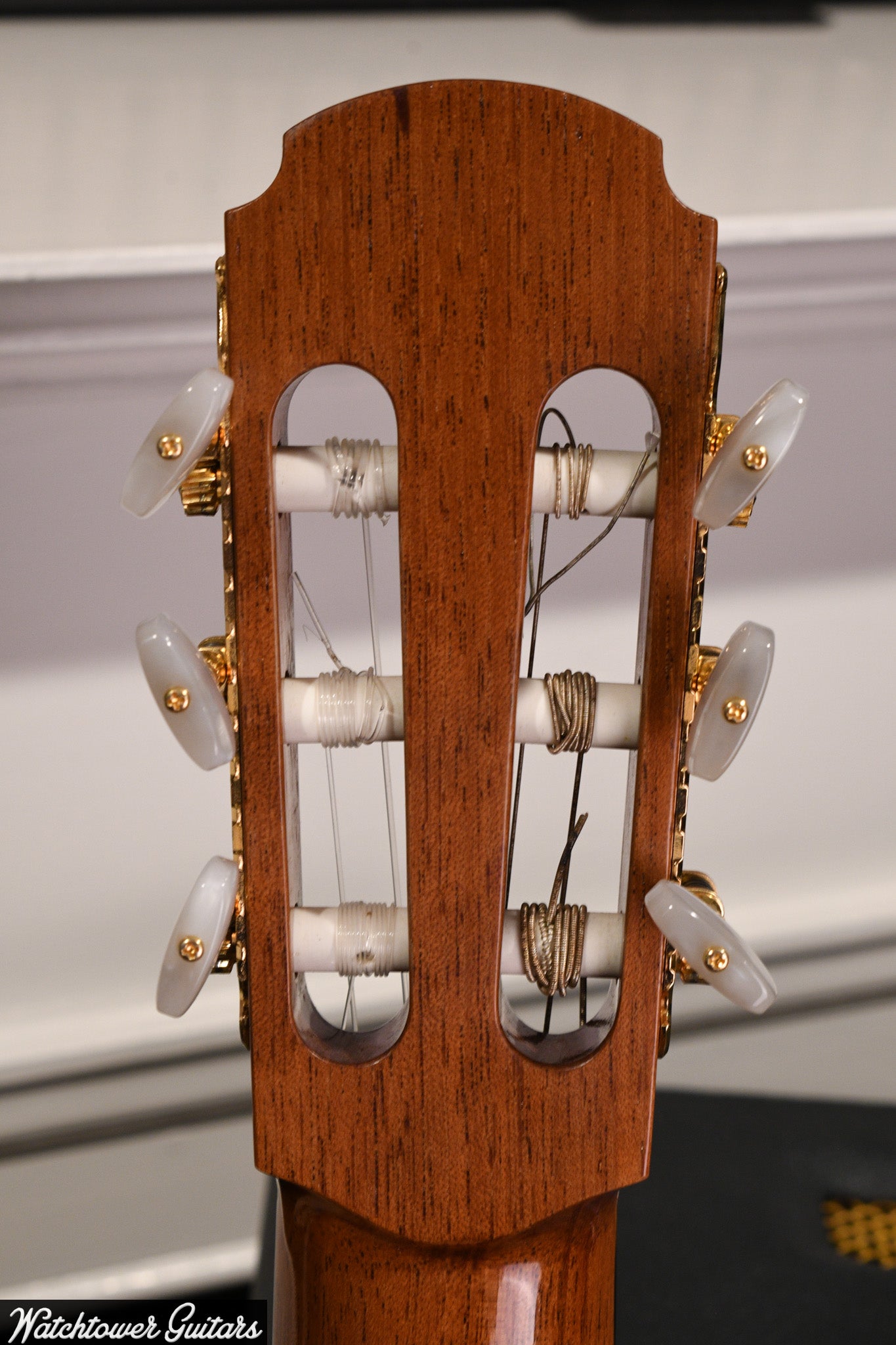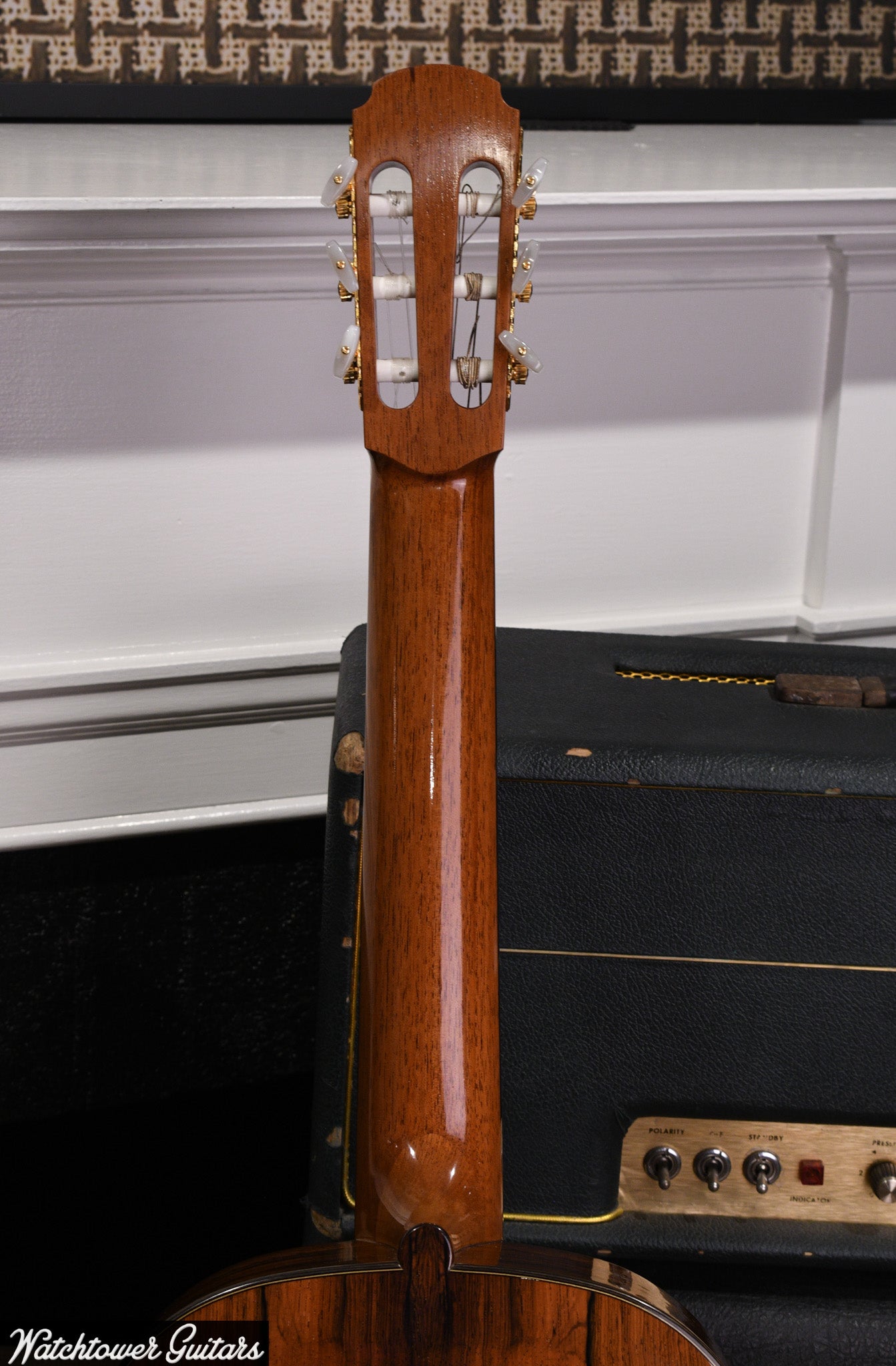 The 1991 Giussani classical guitar is a fine example of traditional luthier craftsmanship from Gioachino Giussani. Built with Brazilian rosewood for the back and sides, this guitar offers a lush and warm tonal palette that is highly sought after by classical guitar enthusiasts. The spruce top complements the rosewood beautifully, providing a bright and responsive sound ideal for nuanced and expressive playing styles.