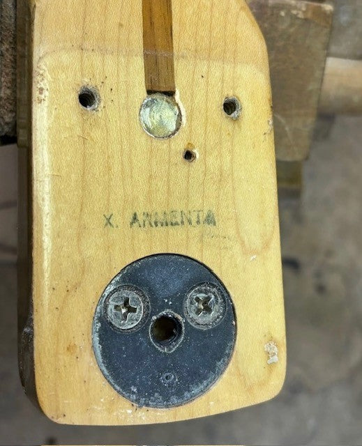 - Modifications/repairs: Shielding paint in cavities; second string tree added; pickup ground re-soldered at volume pot (mix of new/original solder); middle & neck pickup leads re-soldered at switch; middle-tone pot solder reflowed; removed ground wire on middle tone pot