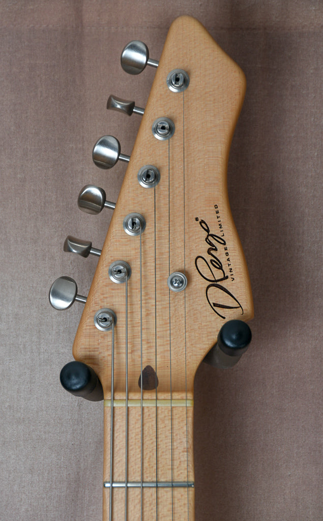 Just to us fresh out of a large collection is this beautiful D'Pergo Vintage Limited finished in white blonde. The workmanship and playability on this guitar are truly remarkable. It may have the best fret work I've ever seen on a new guitar. All of the materials used in this build are just perfect. From the swamp ash body to the maple neck this guitar is at another level. Sonically this guitar is very versatile covering both Strat and Tele tones with ease. The guitar is all original and will ship in it's original form fit road case. Again please touch base with any questions.