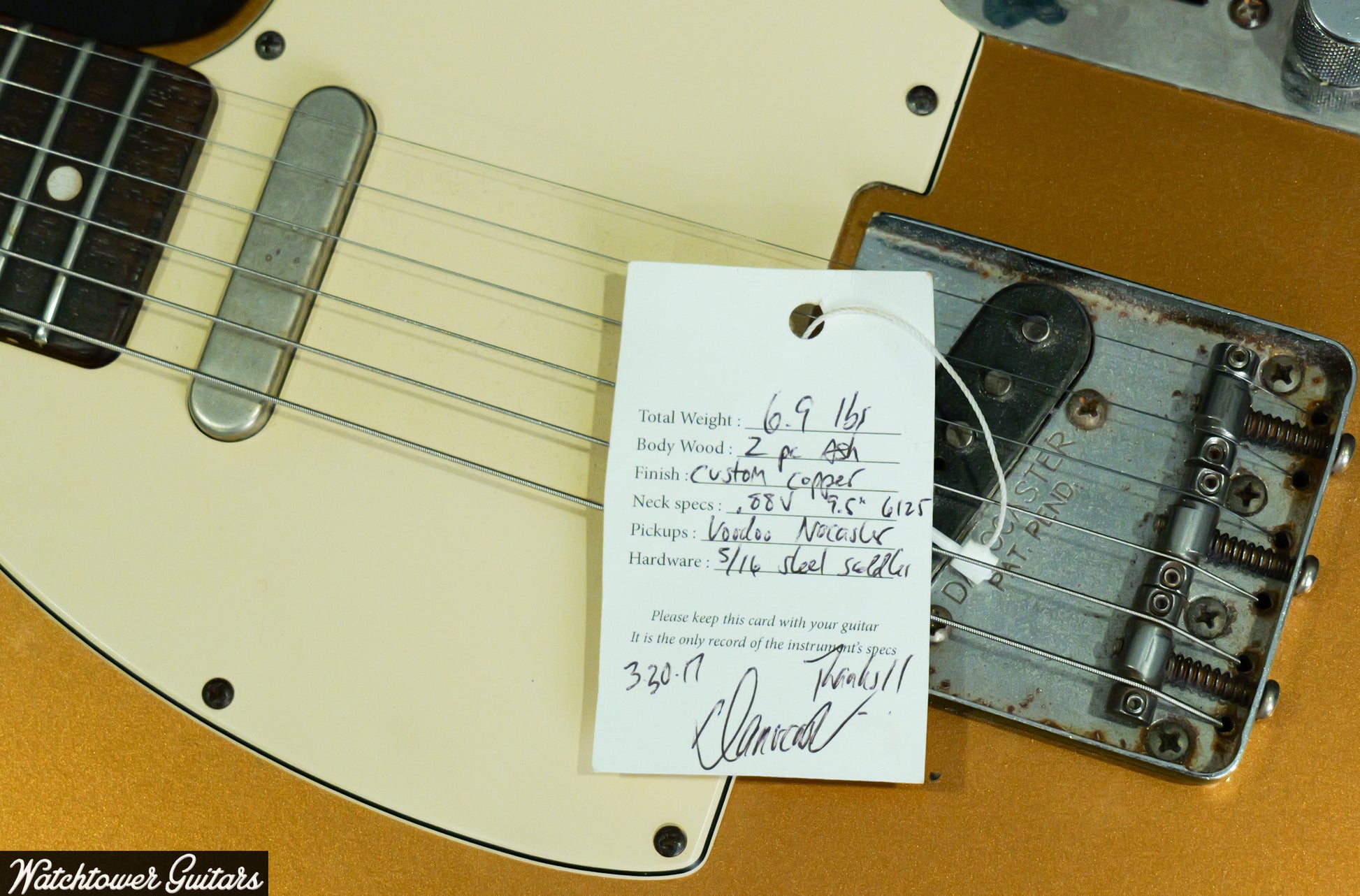 2017 Danocaster Style T Custom Copper Voodoo Pickups