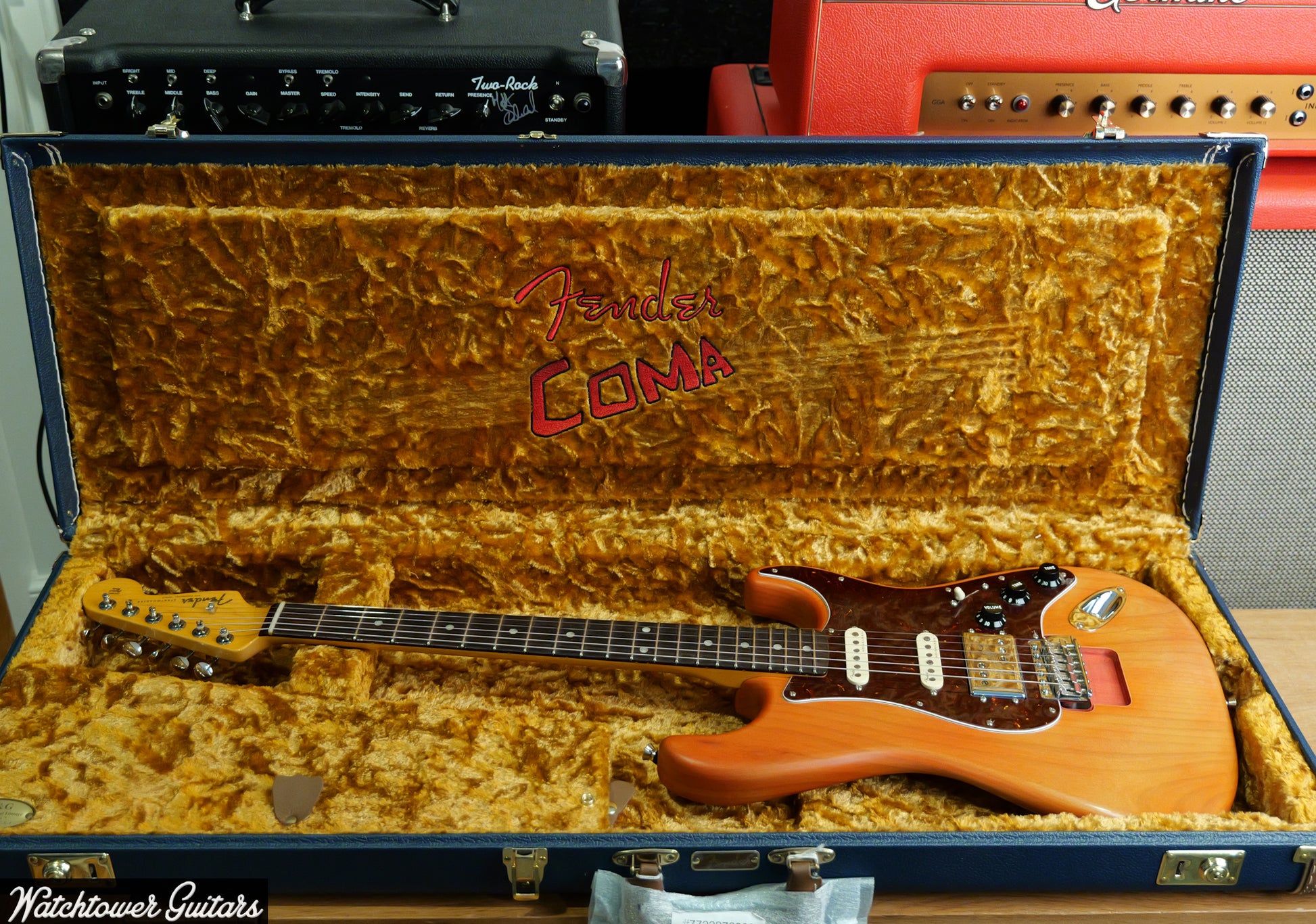 Electronics on this Stratocaster include custom ML Ultra Noiseless Strat pickups in the neck and middle positions, along with a custom ML CuNiFe Wide-Range humbucking pickup in the bridge slot, offering versatile tone options suited to diverse genres. Hardware features a 6-screw vintage-style tremolo with a cold-rolled steel block, and Fender ClassicGear tuning machines ensure tuning stability. Additionally, the body contains a Floyd Rose route for future modification. This guitar comes with a custom Coma-embroidered hard case, a "Coma" sticker set, a custom strap, and a booklet penned by Michael Landau himself, encapsulating the instrument's storied legacy.