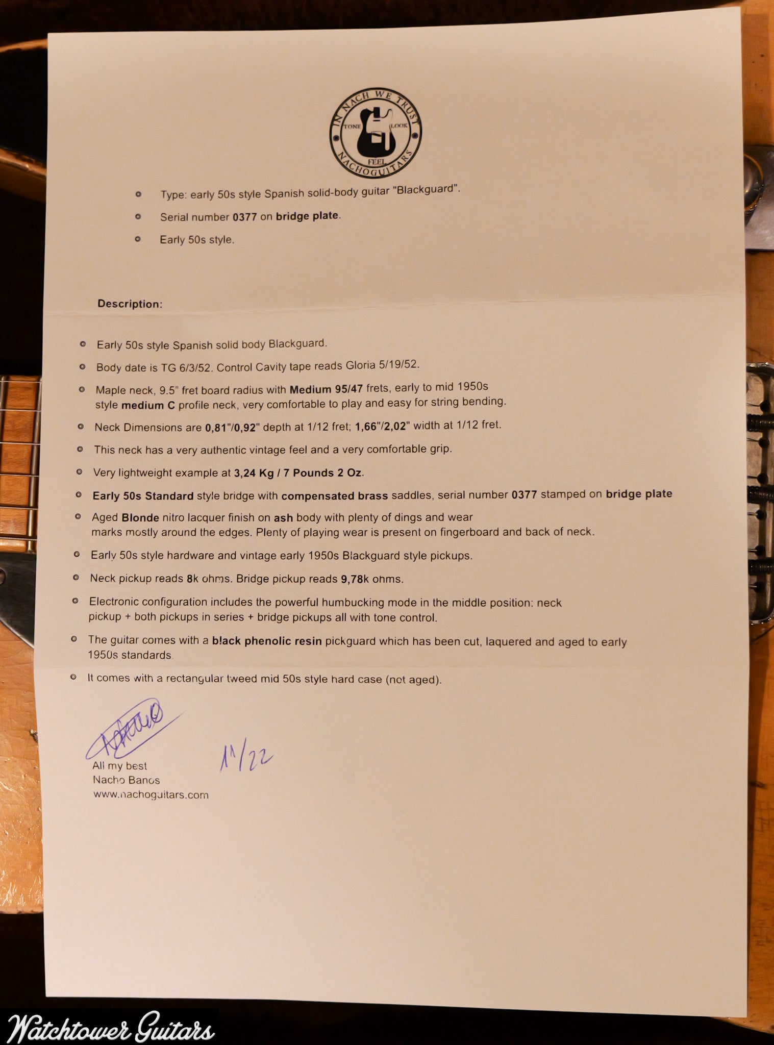 2022 Nacho T Blackguard Butterscotch Serial #0377
