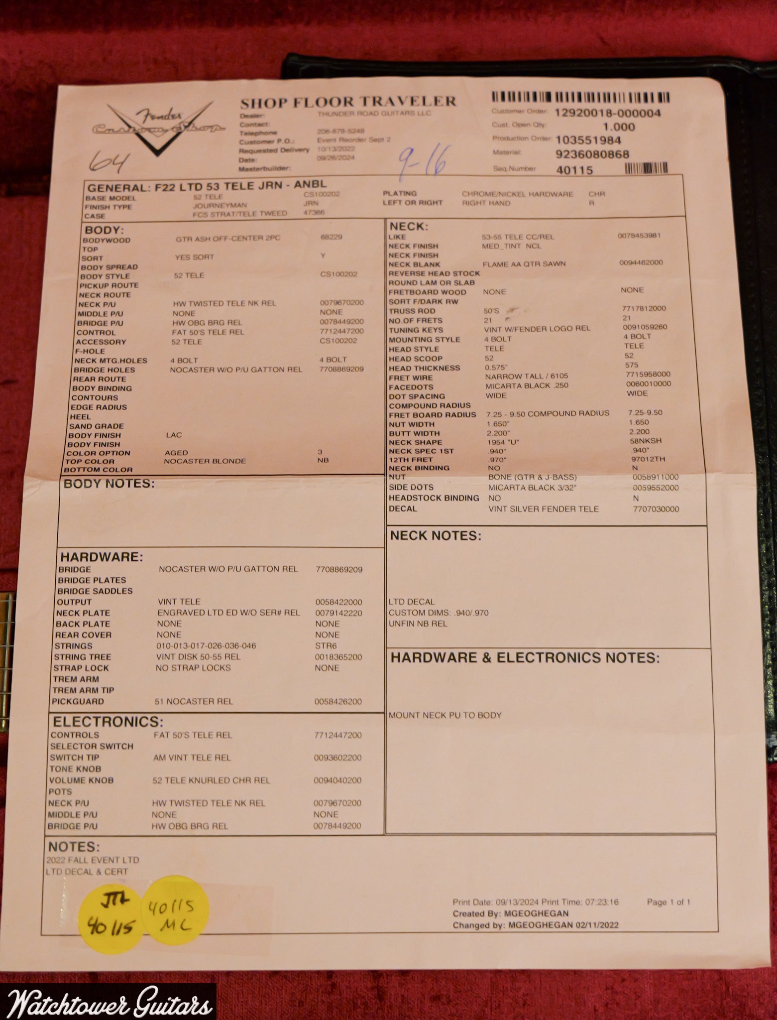 2024 Fender Custom Shop LTD 1953 Telecaster Journeyman Relic Butterscotch Blonde $3,695.00