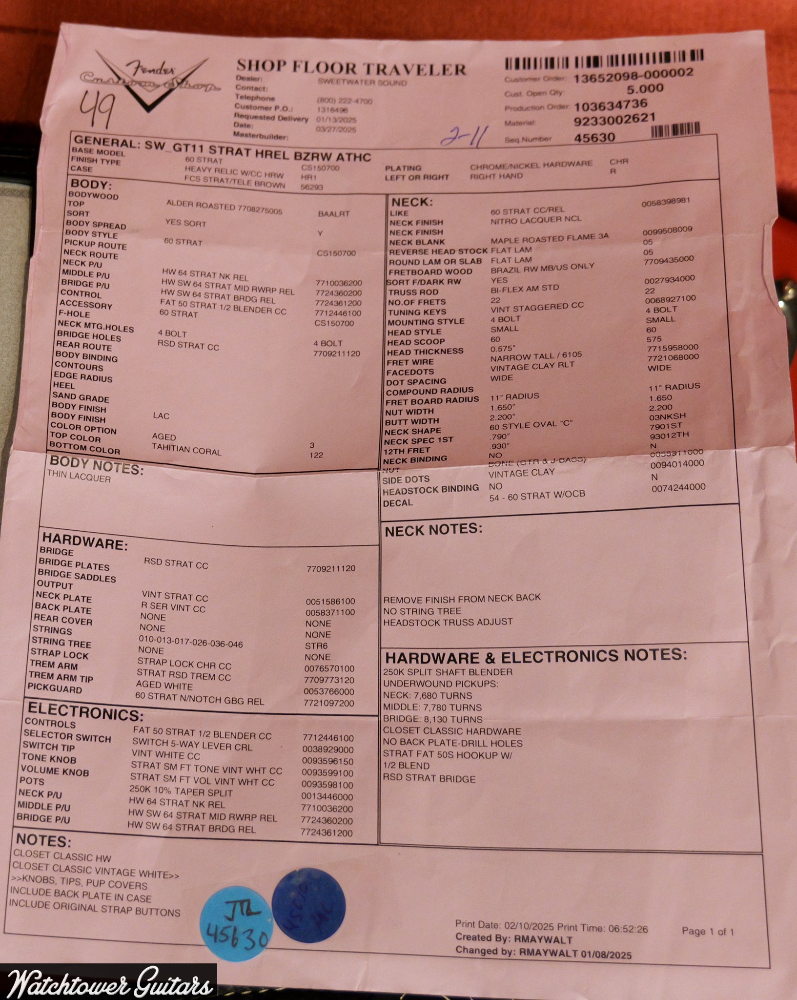 - Model: 2025 Fender Custom Shop '60 Stratocaster GT11 Heavy Relic