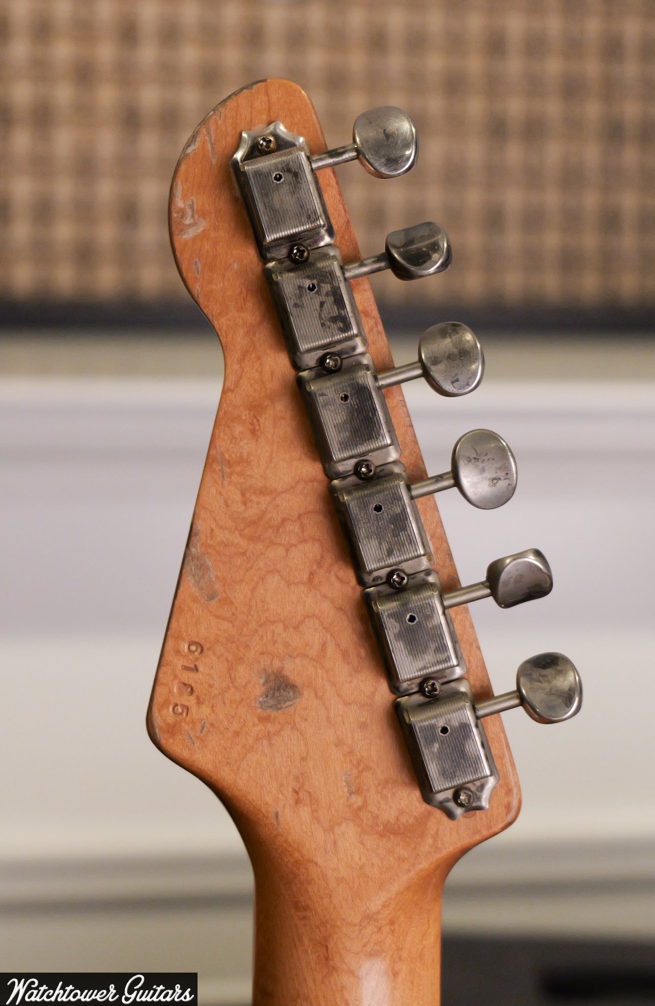 - Chrome vintage hardware including bridge, tuners, and knobs