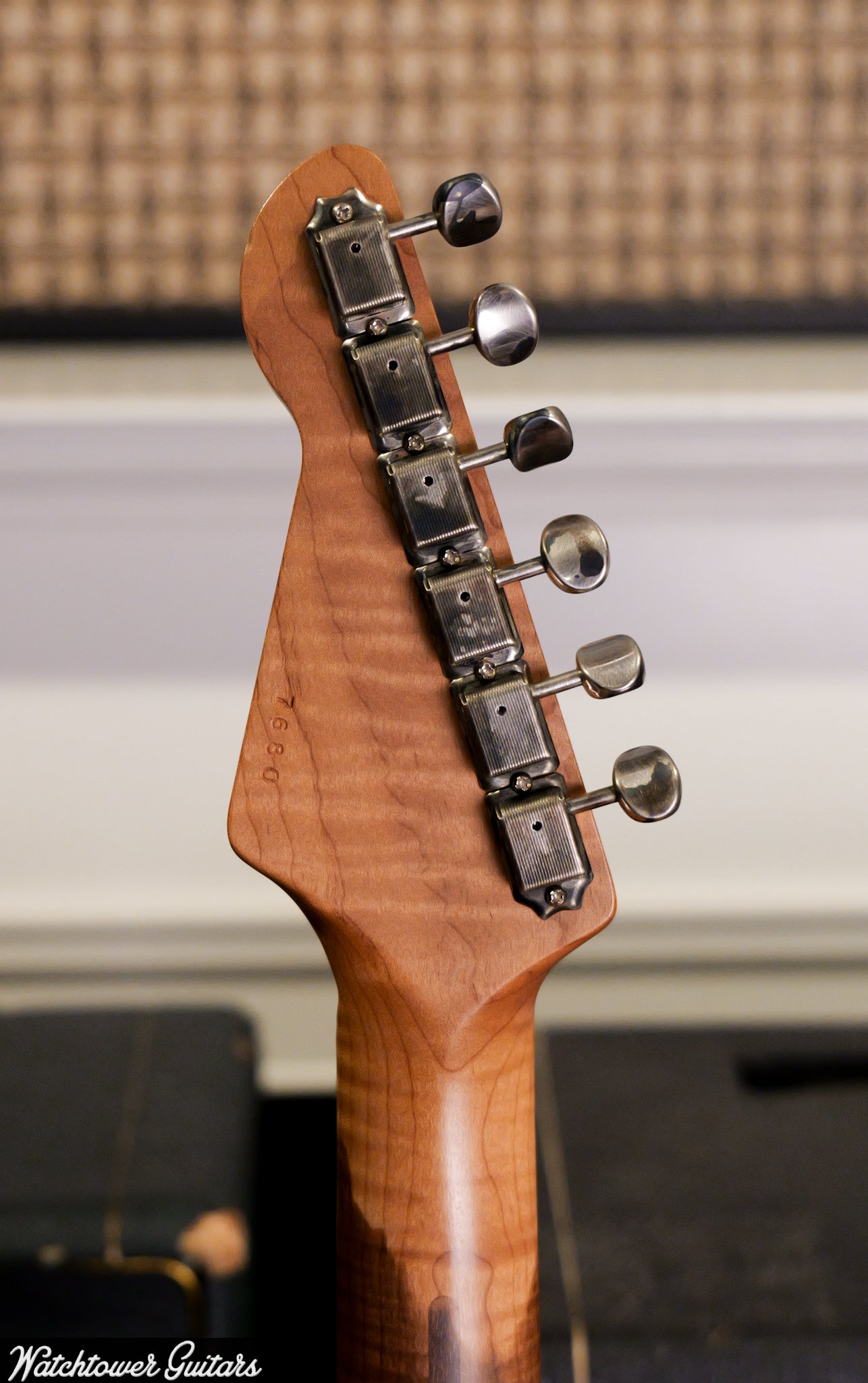 - Body: Alder; finish: Laguna Burst Sparkle (heavy aged)
