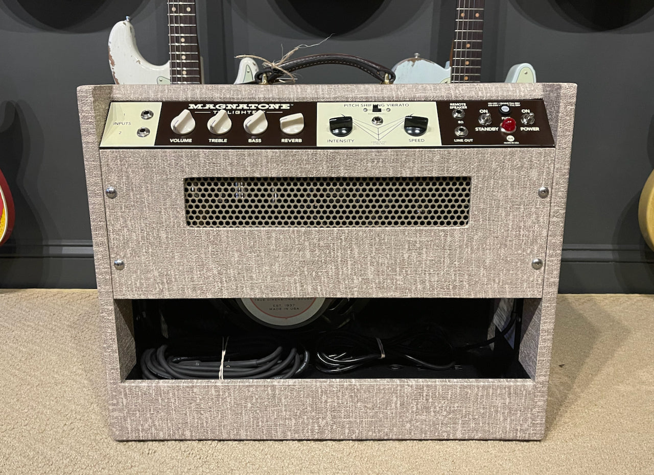 We just had a run of custom color Magnatone amplifiers arrive in the shop and we're super impressed with how they all came out. The vintage brown was always a classic look but we just had to see a Twilighter combo decked out in custom fawn Tolex with a wheat grill cloth. These amps truly deliver on their True Dimensional Sound tag line. Contact us about how these amps can change your tone!