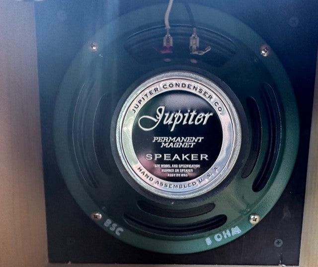 Maple Cabinet with Teak Stain, Custom Grill Cloth, Silver Faceplate, Black Leather Handle"