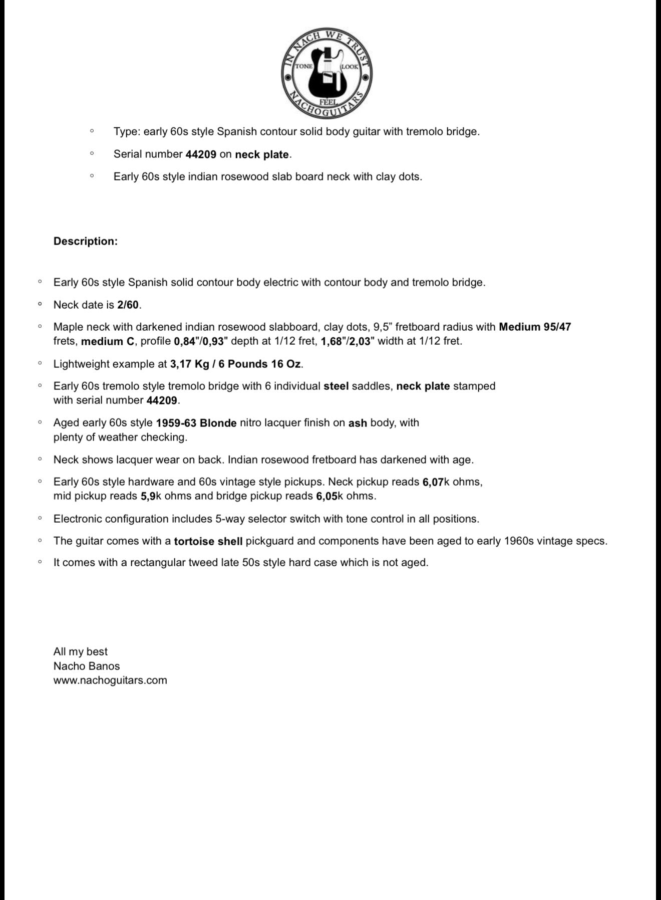 We are proud to offer these brand new Nacho guitars !