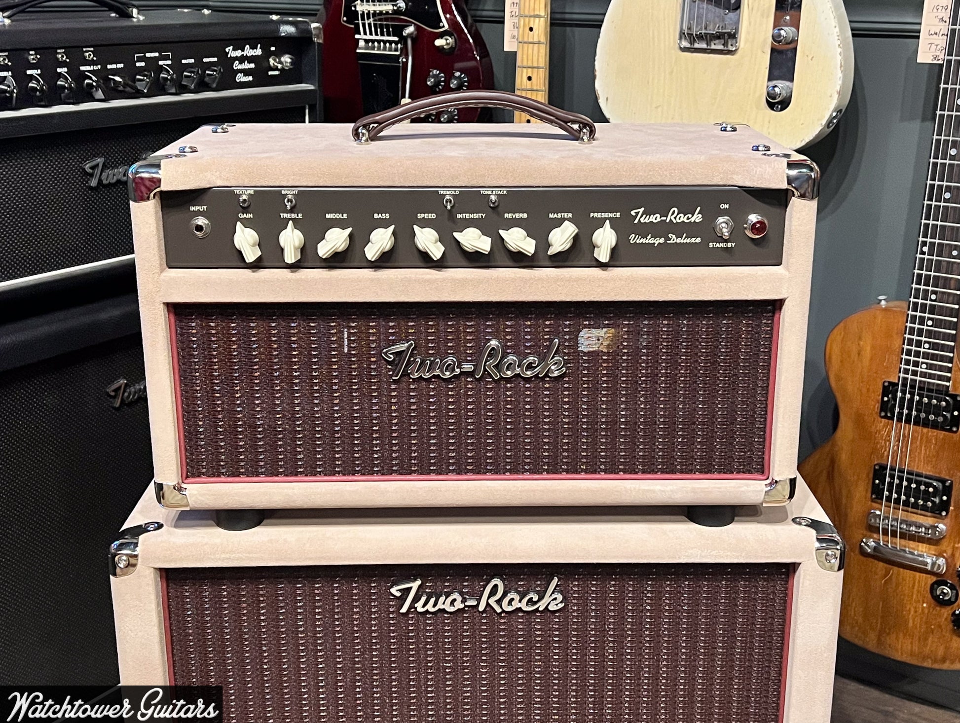 We're super excited about the newest model from the great team over at Two Rock Amplifiers. The new Vintage Deluxe is not just an amplifier it's an instrument and one of our new shop favorites. We ordered all of the matching cabinets to try and have the most desirable combinations.