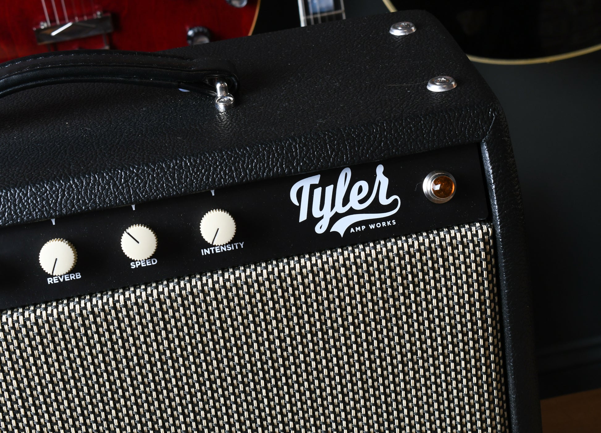 We're very excited to be carrying Tyler Amp Works at Watchtower Guitars. These high quality amps remind us of classic black face designs but with a modern twist. We all love a 1960's black face Princeton Reverb but Tyler takes that and adds some really usable features. Firstly this is Tyler's new 22 watt version of its classic JT-14 design. Not only does it have a lush reverb and tremolo but there's the new Tone Speak Austin 12" speaker, mid control and fat boost that take it over the top. Then it gets even better with custom tolex and cabinet finishes. All of this at a price point that makes sense for the working musician or home player this amp is a great value.